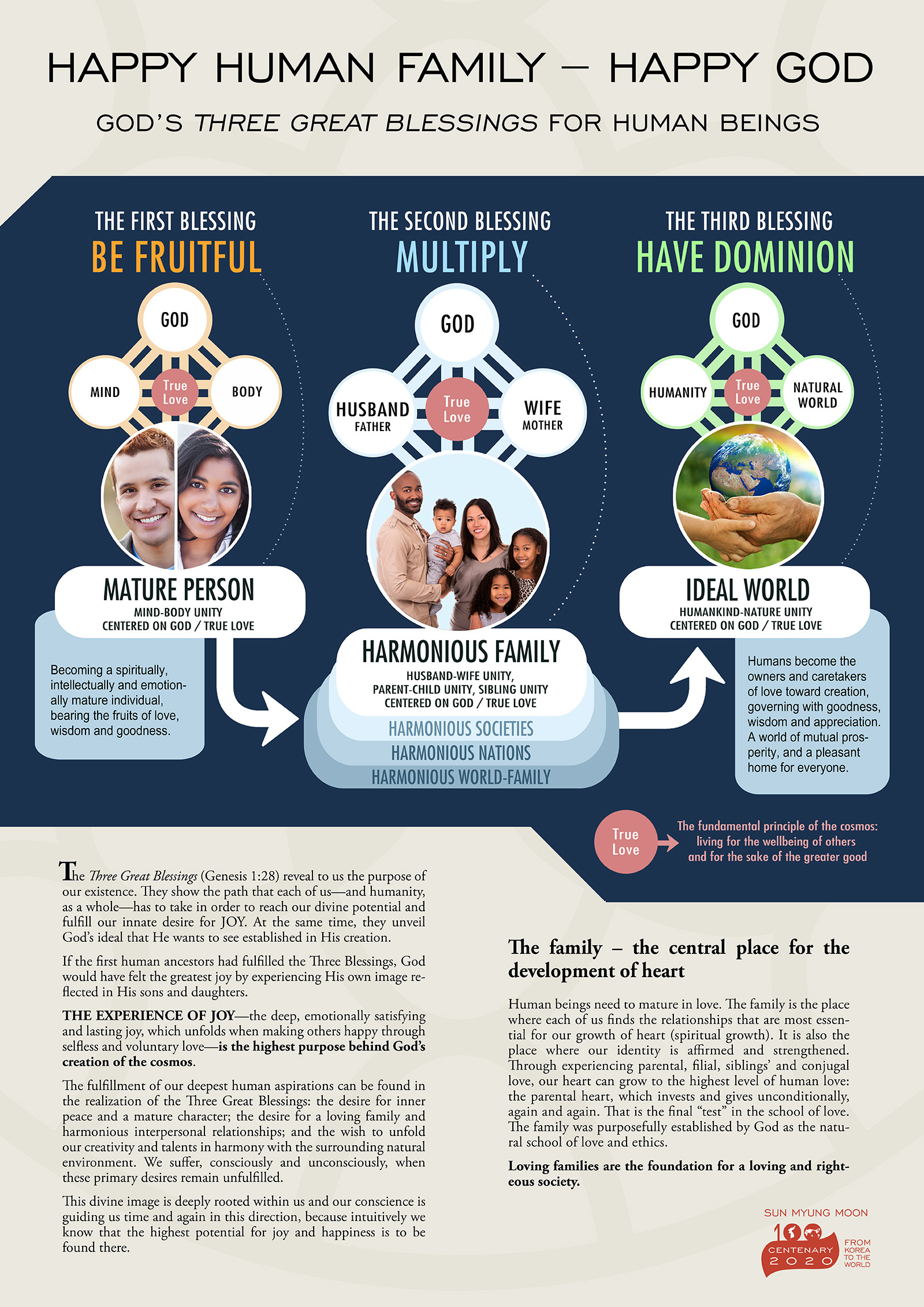 BOG MOŽ OČE RESNIČNA LJUBEZEN ŽENA MATI HARMONIČNA DRUŽINA ENOTNOST MED MOŽEM IN ŽENO ENOTNOST MED STARŠI IN OTROKI, ENOTNOST MED SOROJENCI BOG KOT SREDIŠČE/RESNIČNA LJUBEZEN HARMONIČNE SKUPNOSTI HARMONIČNE DRŽAVE HARMONIČNA SVETOVNA DRUŽINA