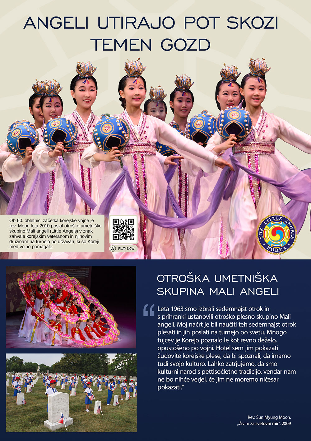 Ob 60. obletnici začetka korejske vojne je rev. Moon leta 2010 poslal otroško umetniško skupino Mali angeli (Little Angels) v znak zahvale korejskim veteranom in njihovim družinam na turnejo po državah, ki so Koreji med vojno pomagale.